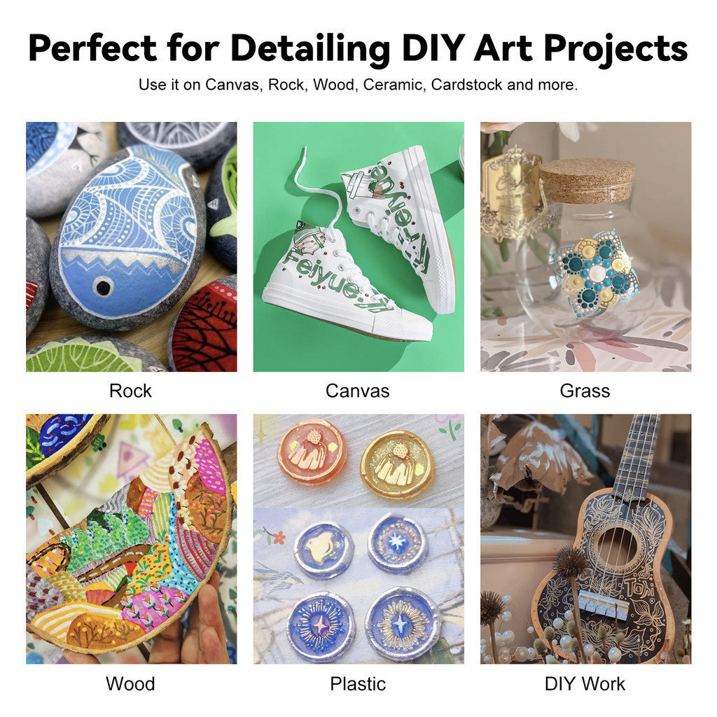 Featuring dual-tip acrylic markers: the fine tip offers precise control for line drawing, strokes, and writing, while the brush tip is perfect for coloring larger areas.