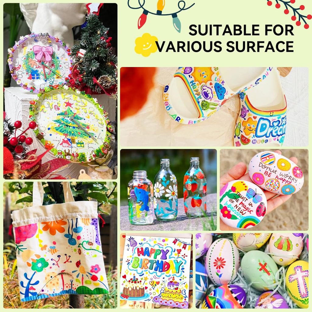 ✅ Safe for Everyone: Certified odorless and non-toxic, these paint pens are perfect for both adults and kids. Whether you’re an experienced artist or a beginner, they’re safe for all your DIY adventures.