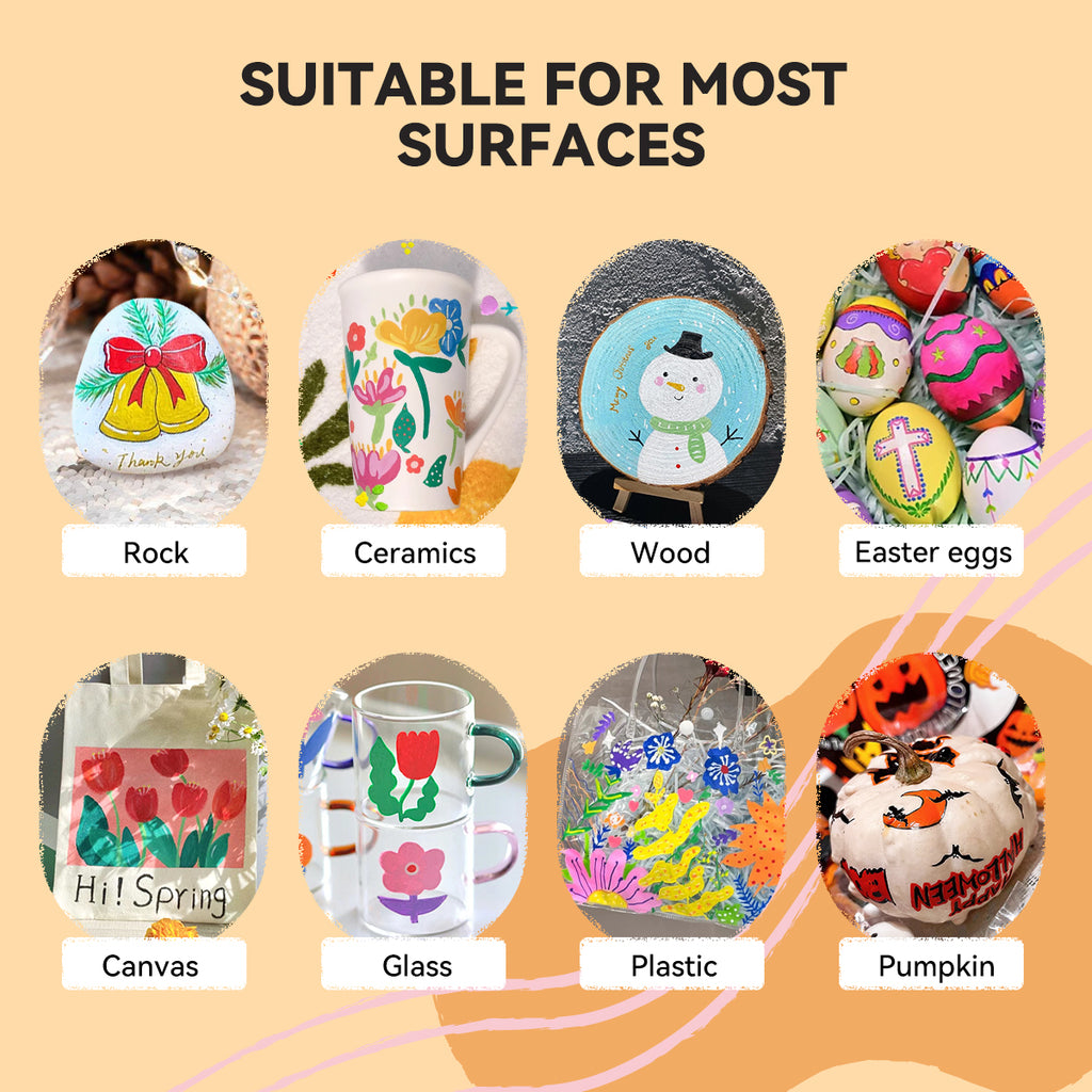 Works Well on Diverse Surfaces - Arrtx acrylic markers provide water-based smooth ink and excellent coverage for various surfaces, including paper, cardstock, metal, rock, wood, plastic, canvas, fabric, stone, Easter eggs, Easter decorations, Christmas ornaments, Halloween pumpkins, calligraphy, scrapbooking, brush lettering, Christmas cards, birthday gifts, greeting cards, and any other DIY crafts projects. Let your imagination run wild!