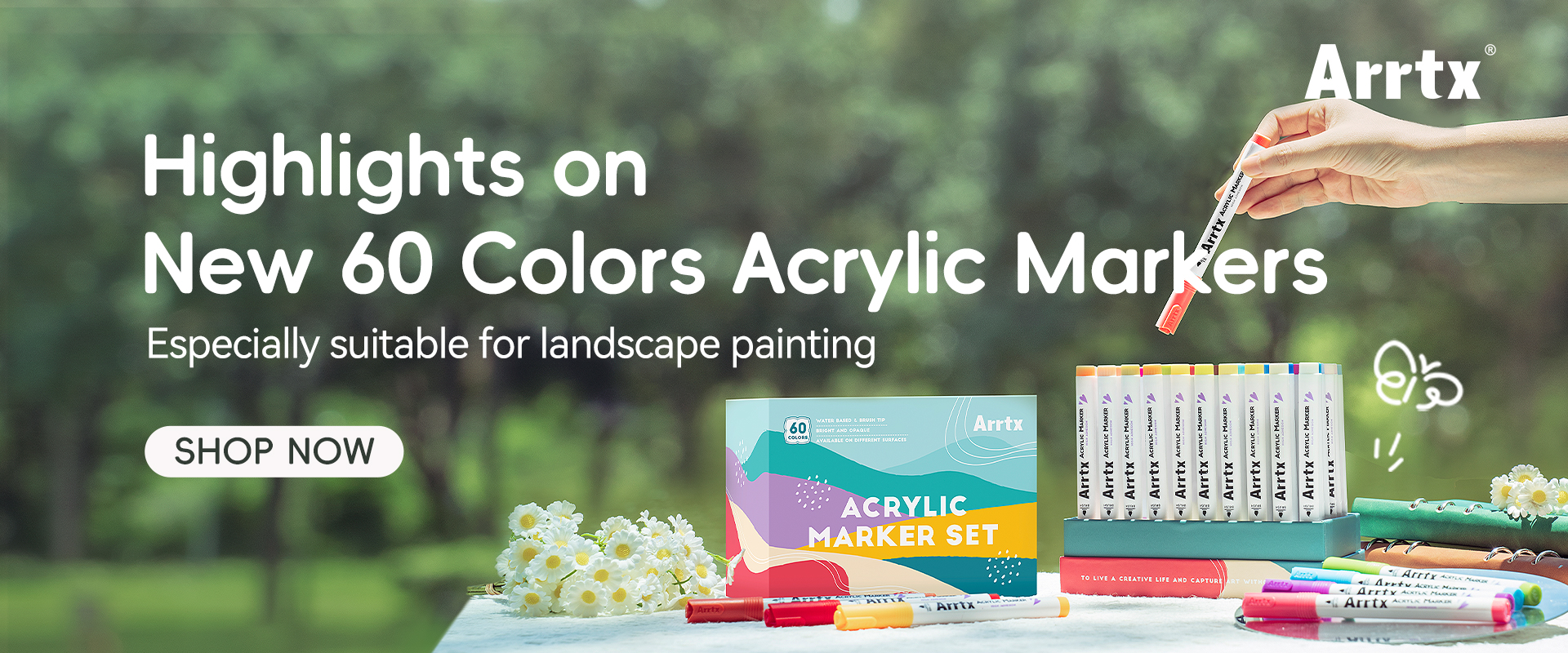 Meet a curated 60-color landscape palette built for smooth, expressive brushwork and professional results. Each marker uses a resilient brush tip that moves from crisp, hairline details to broad, painterly strokes with ease. The water-based ink lays down evenly, dries quickly, and resists fading, so your skies, foliage, and water textures stay clean and vibrant. A sturdy storage box with a built-in base keeps the set organized and ready on your desk.