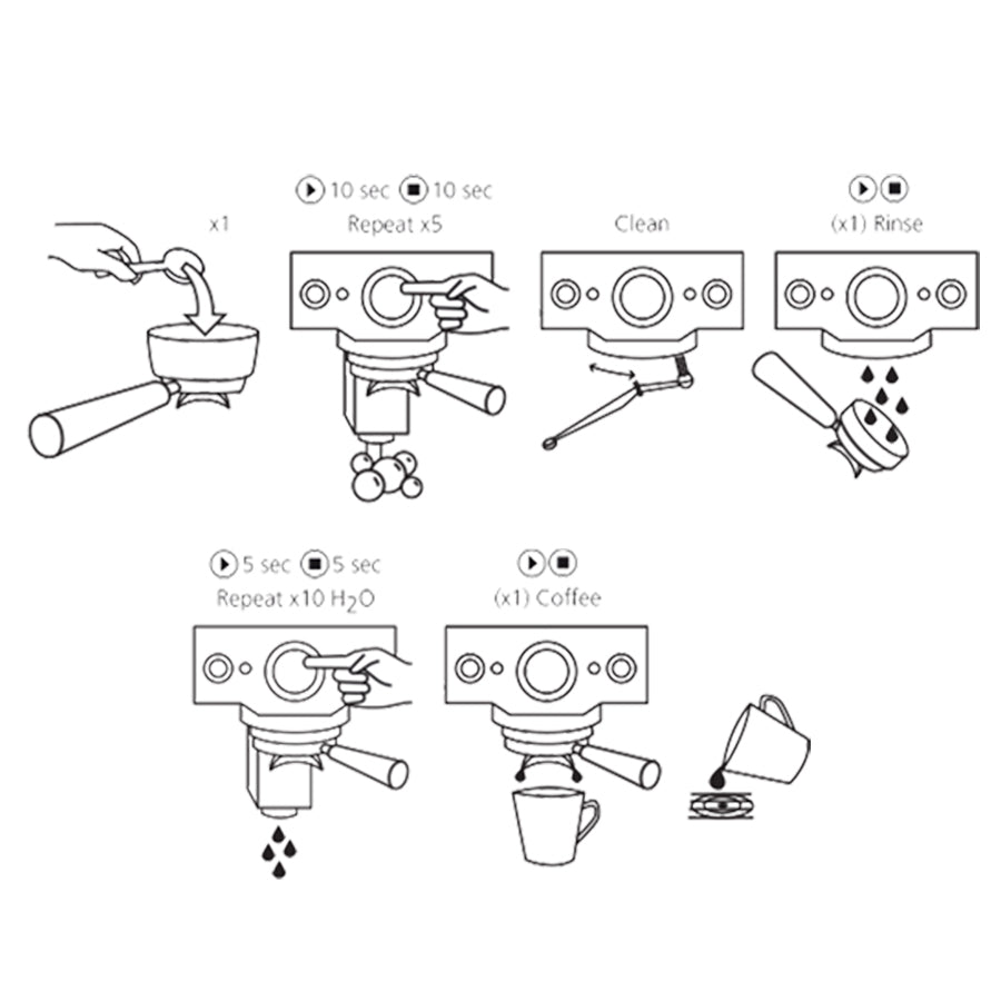 Soak group handles and filters in 500ml of hot water + 2 scoops of Espresso Clean®.