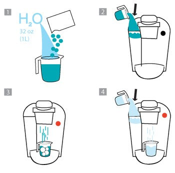 1. Dissolve 1 packet (28g) of Dezcal Descaling Powder into 32oz (1 liter) of lukewarm water.