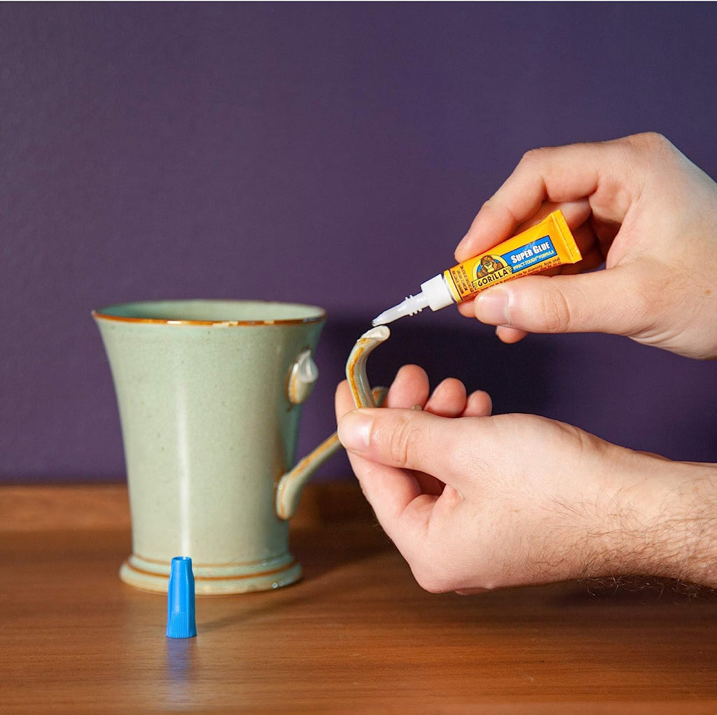 Its high strength and quick set time make Gorilla super glue the go-to adhesive for a variety of household projects. Developed for long-lasting repairs in an instant, the clear glue dries in 10-45 seconds. Our super glue is reinforced for increased impact resistance to handle bumps and drops. We call it impact-tough because the reliable bond stands up to wear and tear. Super glue, also referred to as cyanoacrylate glue, or ca glue, works on a variety of materials, including plastic*, metal, stone, ceramic, paper, rubber and more. In addition to Gorilla super glue's high-performance cyanoacrylate formula, we've added an anti-clog cap with a metal pin inside ensuring an airtight seal for maximum reusability. It's Gorilla tough, every time.