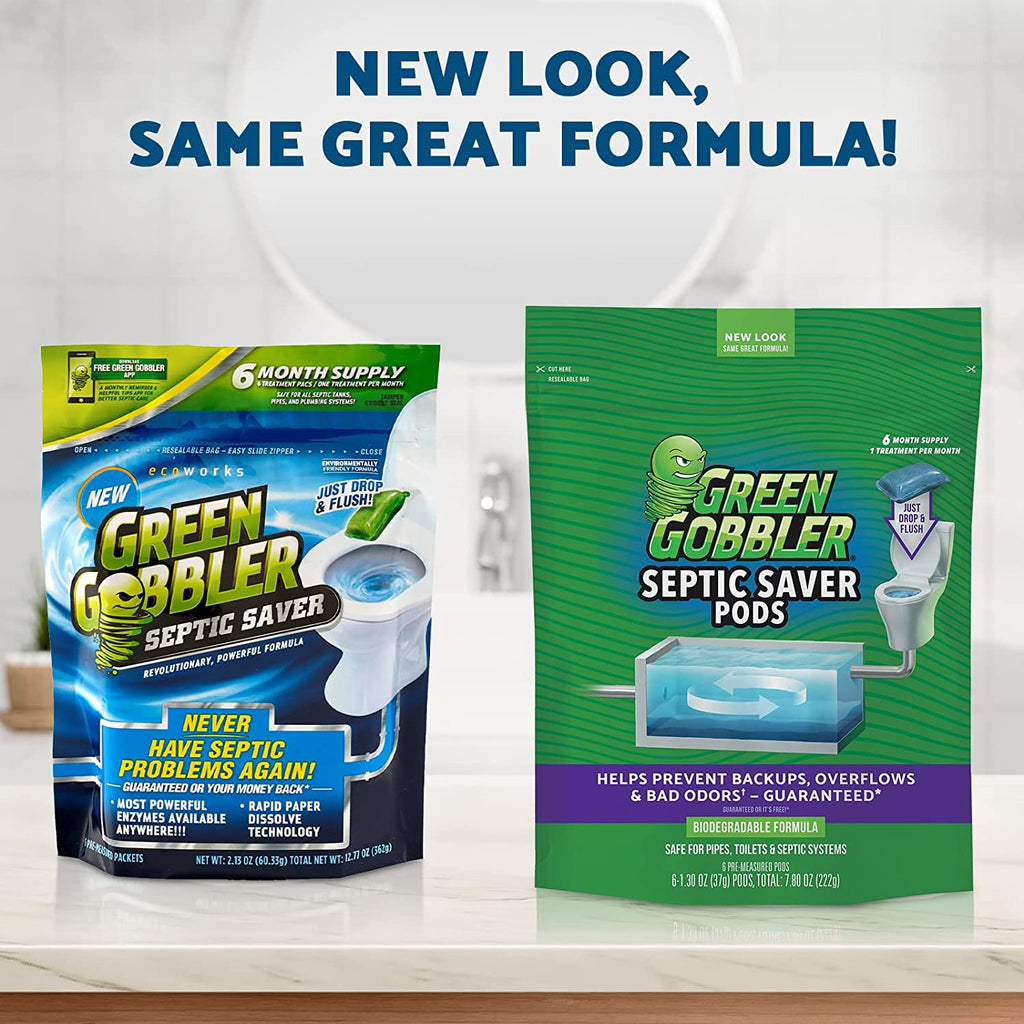 Each bag of Green Gobbler Septic Saver contains a 6 month supply of water soluble pods. Simply drop and flush a single pod once a month into your bathroom toilet. Preventative maintenance will save you the hassle of costly septic tank services.