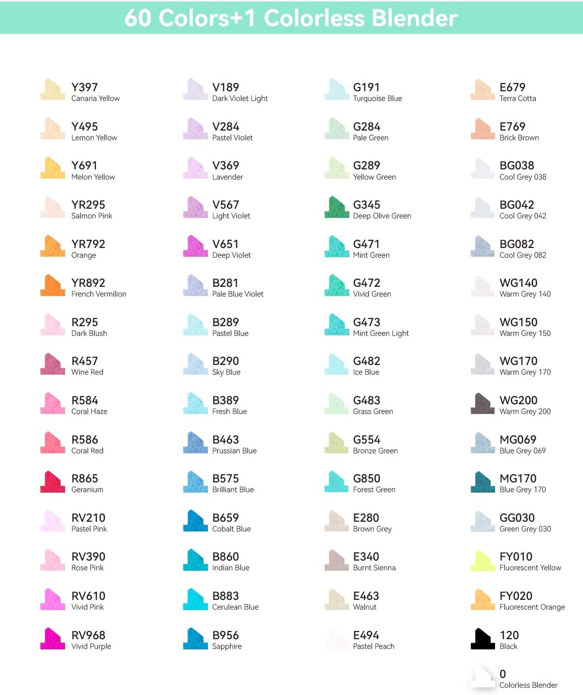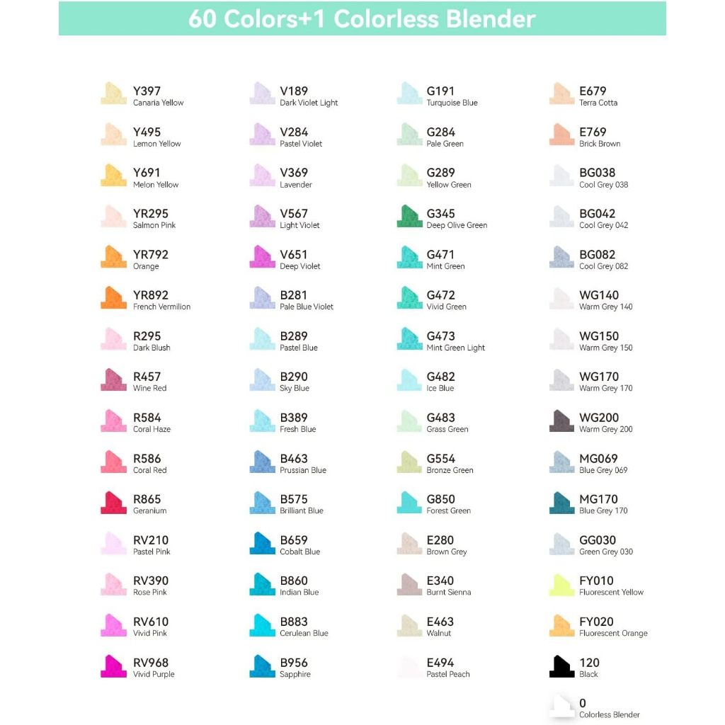 -60 Vibrant Colors + 1 Colorless Blender – Rich, brilliant tones with a blender for gradients, shading and smooth colour transitions.