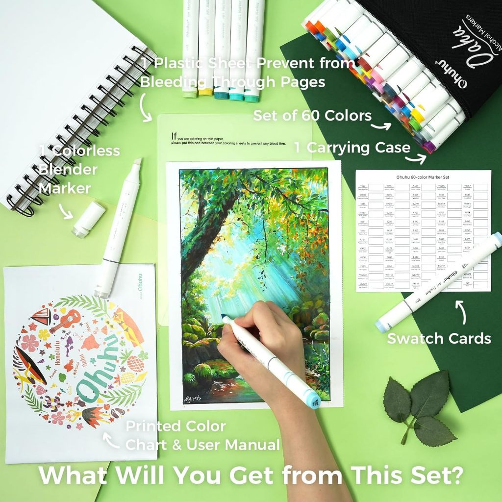 Elevate your artwork with the Ohuhu Oahu 60 Colors Dual-Tip Alcohol Art Markers, designed for artists, designers, students and hobbyists who want rich, blendable colours with professional results. This complete set includes 60 vibrant shades plus a colorless blending marker, giving you unlimited creative possibilities for illustrations, comics, journaling, sketching and more.