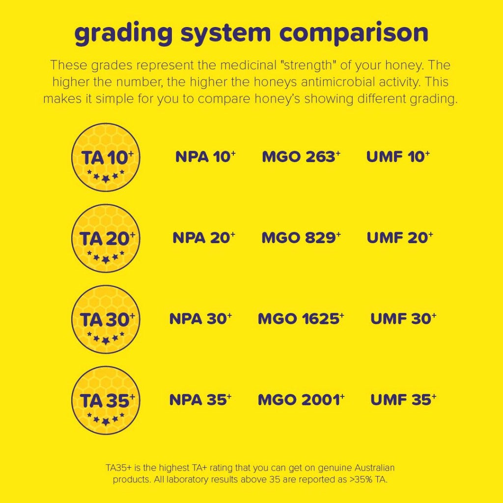 Total Activity (TA) is a measure of the level of activity of the natural enzymes in the honey. The higher the TA, the stronger the antibacterial and antimicrobial activity levels. In other words, the higher the rating, the better it is in fighting bacteria and other microbes.