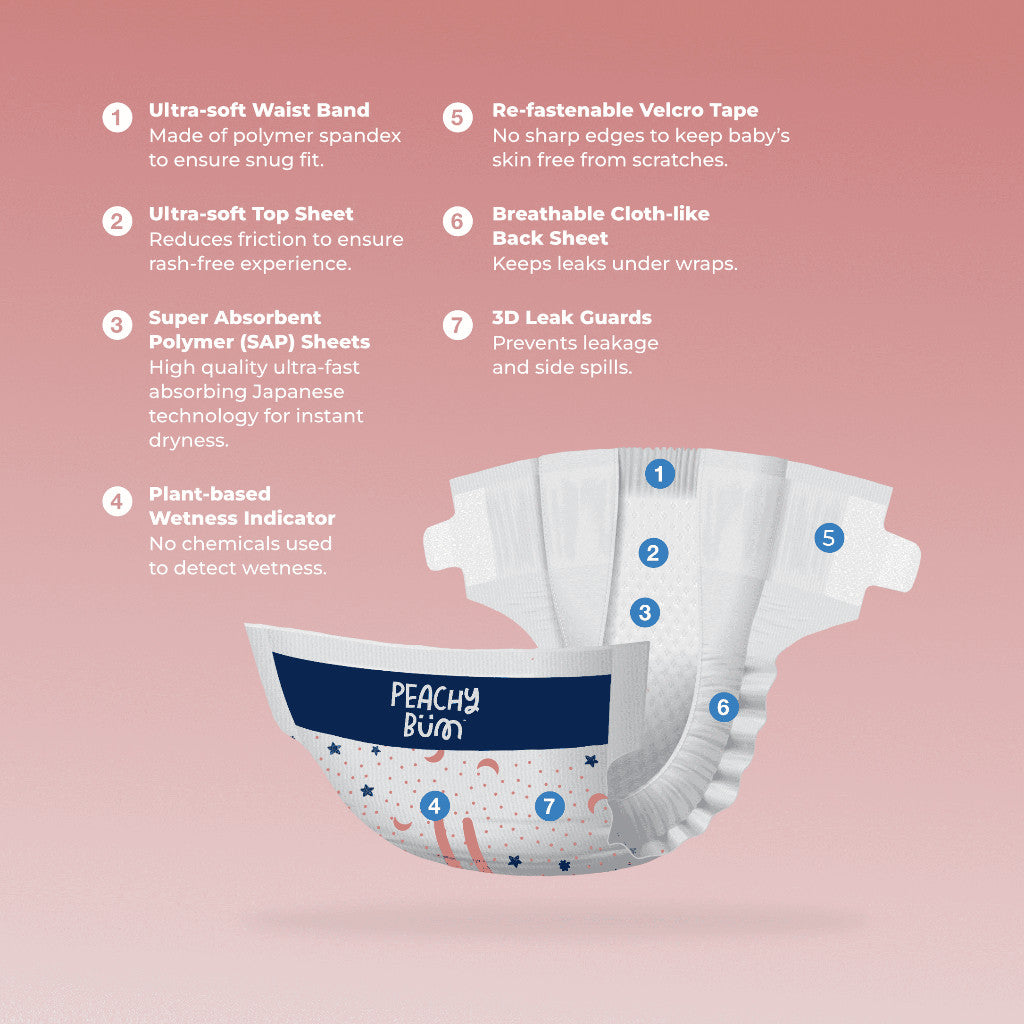 #PeachyBum #BabyDiapers #NewbornDiaper #SensitiveSkinBaby #EcoFriendlyDiaper #DiaperSizeNB #DiaperSizeS #DiaperSizeM #DiaperSizeL #PullUpDiaper #GentleOnSkin #SoftAndSafe #ParentingMadeEasy #MomLife #DadLife #BestDiaperForNewborn #LeakProtection #CloudSoftComfort