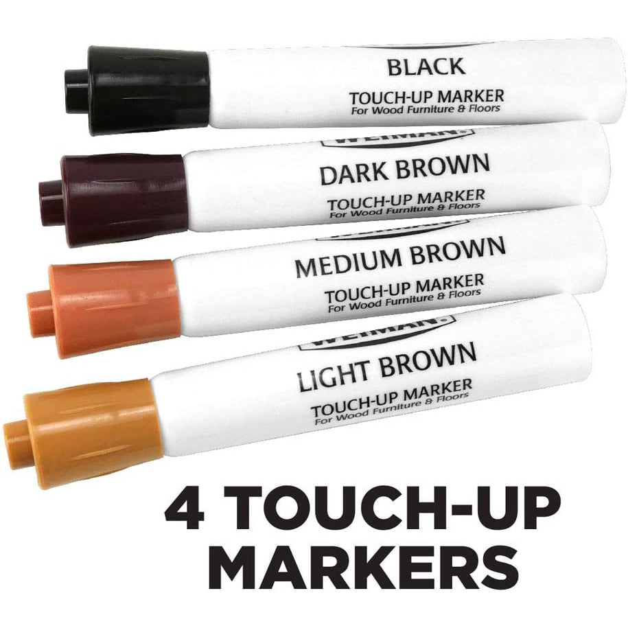 The no-drip Weiman Touch-Up Markers come in a variety of light brown, medium brown, dark brown & black colors that dry in seconds; allowing you to blend multiple colors to accurately match your wood finish and enrich the true beauty that your home deserves. Maintain the long-lasting beauty of your home with Weiman Filler Sticks that contain a blend-to-match set of light brown, medium brown, dark brown & black colors to fill deep scratches. gouges & nail holes without discoloration or drying out. Find the perfect blend of colors that instantly cover & hide hardwood imperfections including nails, holes, scratched furniture, blemishes, scuffs, wood-veneer, desk furniture, floors, trim, cabinets, tables, bedposts, doors, frames, furniture, cabinets, floors, woodwork, paneling, molding & more.