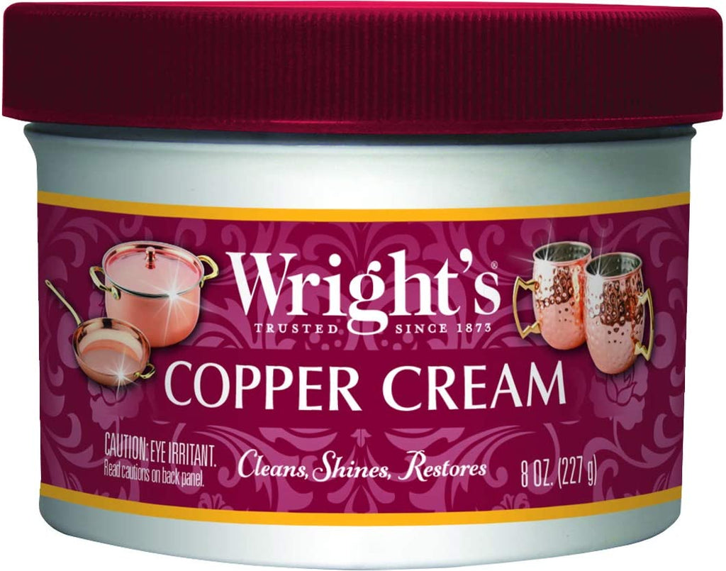 Give your copper the long-lasting shine and protection with the original, gentle, all-purpose Wright's Copper Cream. Made with only the finest ingredients and engineered with a mild, non-scratch formula that instantly removes tarnish and polishes copper & other metals to restore natural color, luster & shine. Anti-tarnish agents leaves a protective tarnish coating that prevents & delays tarnish from re-tuning and keeps copper shining longer for years to come. Wright's Copper & Brass Cream Cleaner can easily clean and restore the color and shine of your copper cookware and other fine copper. Fast-acting and odor-free, Wright's Copper & Brass Polish & Cleaning Cream erases the discoloration caused by high heat or food spills. It's easy to apply, rinses off completely, and is gentle enough for everyday use. Gently revitalize copper mugs, pots, pans, sinks, hardware, doorknobs & other copper pieces to leave an immense, mirror-like shine. Instantly clean, shine and restore dull, discolored metal with the 3-in-1 all-purpose Wright's Copper Polish Cream. Wright's Metal Care is the perfect home, chef, pro, scratch resistant, cleansing, household, professional, and at work solution for all of your copper cleaning and buffing needs. The best specialty cleaning products you will buy online or in a store. When cleaning is your therapy, Wright's Metal Care is your method, just wipe away and not a fingerprint in site!